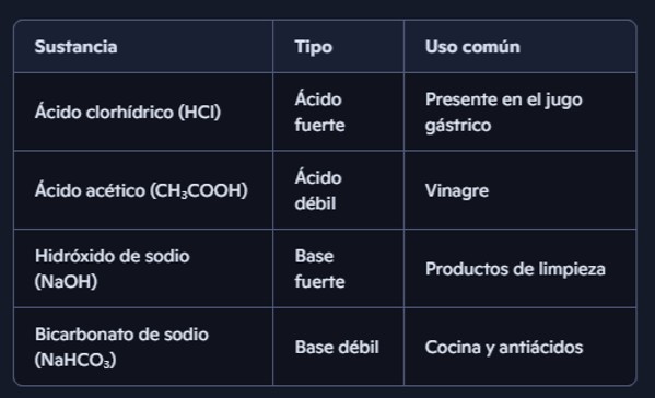 Ejemplo: HCl (ácido clorhídrico) → se disocia en H⁺ y Cl⁻.