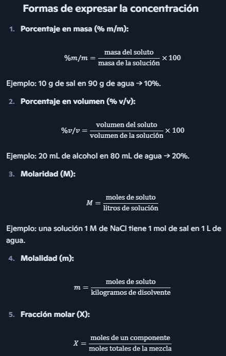 La concentración de mezclas en química se refiere a la cantidad de soluto (la sustancia disuelta) presente en una determinada cantidad de disolvente o de solución. Es una forma de expresar qué tan "fuerte" o "diluida" está una mezcla.